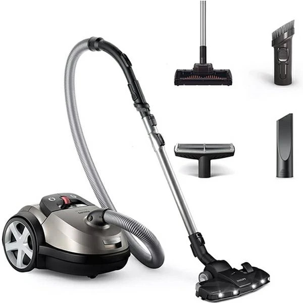 تجهیزات جانبی: همراه با جاروبرقی، شلنگ، لوله، برس و سر جارو برای انواع سطوح از جمله فرش، پارکت و مبلمان ارائه میشود