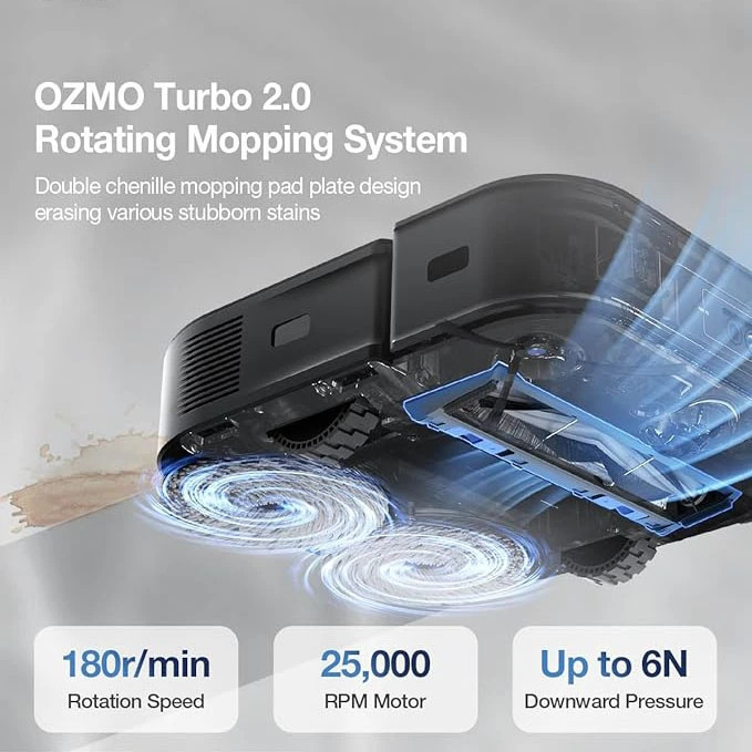 سایر مشخصات : سیستم شستشوی چرخشی قدرتمند OZMO Turbo قابلیت چرخش دوگانه, شستشوی خودکار موپ با آب داغ, قابلیت تغییر ارتفاع سطح, مکان کنترل با دستیار صوتی