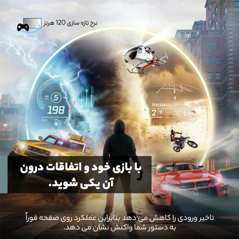 ابعاد با پایه (میلیمتر) : ۱۹۲۳x۱۱۸۲x۳۸۷ میلیمتر