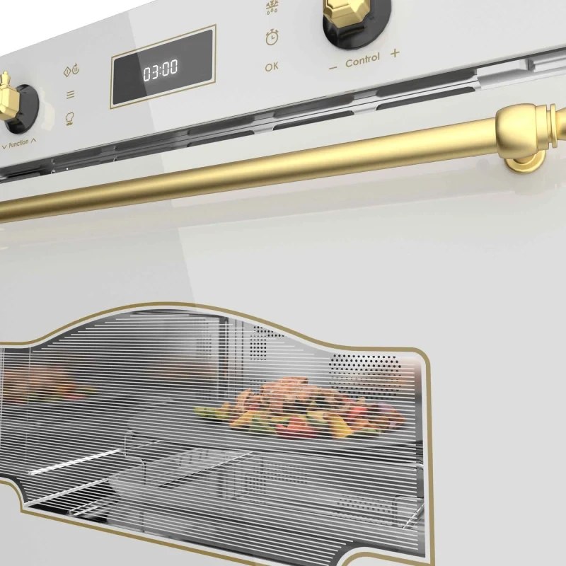 گریل - برنامه یخ زدایی - استفاده سریع زمان متغیر - فن کانوکشن - هشدار اتمام پخت - نمایشگر ساعت - سینی شیشه ای - شلف گریل - فریم استیل