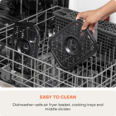 اتمام پخت همزمان هر دو سبد با استفاده از برنامه Sync Finish, ,, امکان اعمال برنامه پخت یکسان برای هر دو بخش پخت, ,, امکان تقسیم سبد به دو بخش مجزا, ,, دارای هشدار Shake برای تکان دادن مواد غذایی در حین پخت