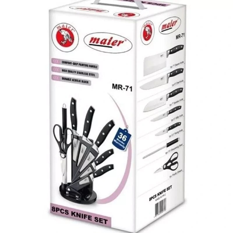 جنساستیل ضد زنگقیچیداردساطورداردچاقوی سرآشپزداردپایه نگه دارندهداردچاقو برش نانداردچاقو در چند سایزدارد
