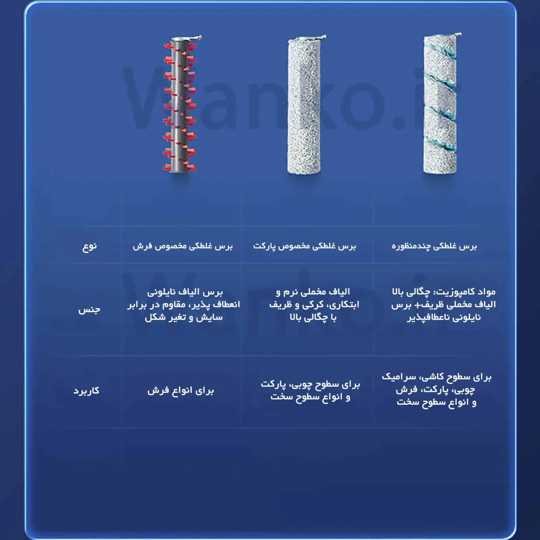 2 محفظه جداگانه برای آب تمیز و آب کثیف, ,, امکان نظافت عملکرد دستگاه برحسب نوع سطح در سه حالت: سطوح سخت – فرش – حالت توربو (نظافت موهای حیوانات خانگی)