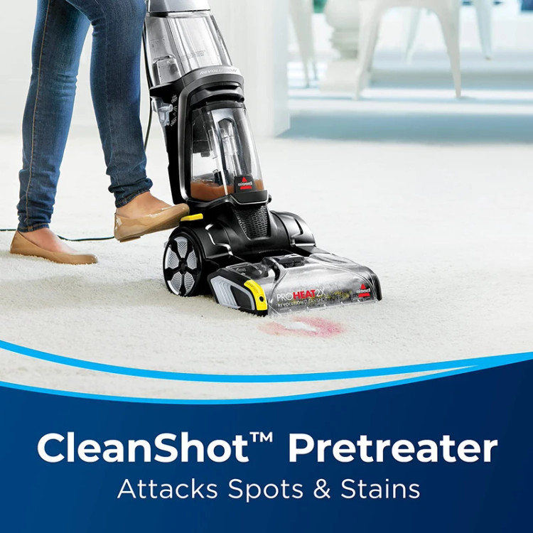 به سخت ترین لکه ها حمله می کند: این دستگاه دارای پیش تصفیه کننده CleanShot برای از بین بردن لکه ها و لکه ها است. پیش تصفیه کننده CleanShot را فعال کنید تا یک جریان متمرکز از محلول تمیزکننده را در جایی که به آن نیاز دارید ارائه دهید. MAX CLEAN & EXPRESS CLEAN MODE: بسته بندی در ۱۲ ردیف دوار پاور براش دوار DirtLifter، تمیز کردن درجه حرفه ای را برای از بین بردن لکه ها، کثیفی ها و بوهای عمیق ارائه می دهد. در حالت Express Clean، فرش های خشک را در حدود ۳۰ دقیقه تحویل می دهد. نکته ۳: فناوری موج گرما: فناوری HeatWave به حفظ دمای آب آبی که در مخزن تمیز میگذارید کمک میکند. این بهترین سیستم تمیز کننده ما برای سخت ترین لکه ها و بوها است – حتی بوی بد را از بین می برد. طراحی با وزن سبک و پا با مشخصات کم: پاک کننده ProHeat ۲X Revolution ما کمتر از ۸ کیلوگرم وزن دارد، بنابراین استفاده و مانور دادن آن را در اطراف مبلمان آسان می کند. این مهندسی شده است تا لکههای سخت را از بین ببرد و به سختی به آشفتگی برخورد کند. PERFECT MULTIASKER: شامل ابزار لکه سخت برای لکه های سخت، ابزار پله ۳ در ۱ که برای گوشه ها، لبه ها و تمیز کردن پله ها طراحی شده است، و ابزار شکاف کشویی برای فضاهای تنگ مانند شکاف کاناپه یا لبه های فرش در امتداد تریم.