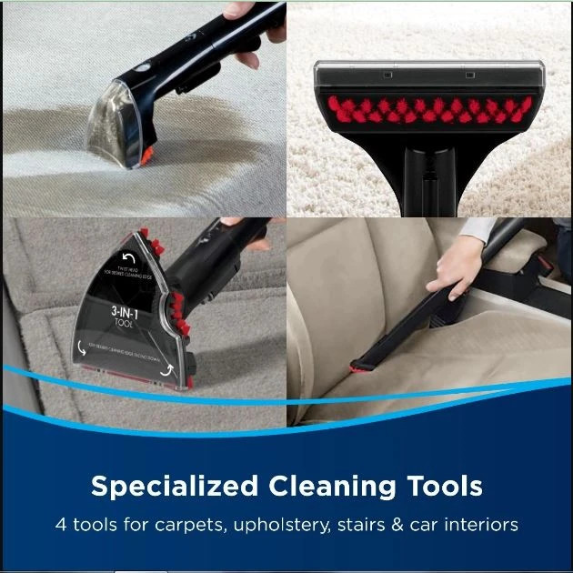 فرش و مبل شوی و لکه بر بیسل مدل BISSELL SPOT STAIN ۴۷۲۰۲ دارای ویژگی های زیر میباشد : ظرفیت مخزن آب تمیز:۱.۴ لیتر ، ظرفیت مخزن آب کثیف:۱.۴ لیتر ، مکان های مورد استفاده:فرش، موکت، مبلمان ، تشک ، منسوجات و صندلی خودرو ،قابلیت اسپری کردن آب:دارد ، محفظه برای جمع كردن سیم برق ، ۲ محفظه جداگانه برای آب تمیز و آب کثیفبدنه محکم ، دارای دو مخزن آب ، این دستگاه مخزن خاک مخزن تمیز با لکه های سخت مقابله می کنید، ابزار پله ۳ در ۱ ابزار شکاف پاشش ۲ در ۱ ابزار لکه گیری ۵ اینچی ابزار لکه گیری ۳ اینچی لکه های سخت را برای همیشه از بین می برد: فرش و مبل شو و لکه بر BISSELL این دستگاه لکه ها و لکه های سخت را برای همیشه از بین می برد. به سرعت انواع آشفتگی های داخل و اطراف خانه را پاک می کند سیستم دو مخزن: BISSELL MultiClean Spot & Stain Carpet Cleaner شامل یک مخزن آب قابل جابجایی برای پر کردن و تخلیه آسان است. سیستم دو مخزن اجازه می دهد تا با آب تمیز تمیز شود در حالی که کثیفی و کثیفی در مخزن دیگری ذخیره می شود. فناوری موج گرما: به حفظ دمای ثابت آب در حین تمیز کردن کمک می کند. این بهترین سیستم تمیز کننده ما برای سخت ترین لکه ها و بوها است - حتی بوی بد را از بین می برد. پس از اتمام تمیز کردن، مخزن آب کثیف به راحتی تخلیه می شود چندین سطح را تمیز می کند: BISSELL MultiClean Spot & Stain Cleaner یک ابزار تخصصی دارد که به سرعت آلودگی های روی فرش، فرش، اثاثه یا لوازم داخلی، پله ها و فضای داخلی خودرو را پاک می کند. همچنین می توان از آن بر روی سطوح نرم مانند کاناپه، مبل، تشک و غیره استفاده کرد استفاده آسان: طراحی جمع و جور آن نگهداری آن را در مکان های مناسب مانند کمد یا حتی زیر سینک آسان می کند. قابل حمل و سبک است. دارای شیلنگی به طول ۲.۲ متر برای تمیز کردن بیشتر مناطق مختلف خانه و ماشین شما