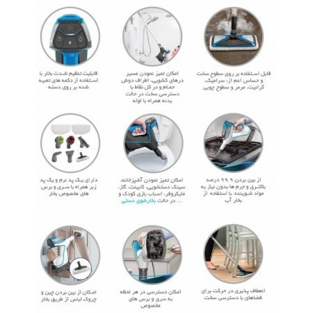 سایر مشخصات : 15 دقیقه بخاردهی مداوم, ,, از بین بردن 99.99% از باکتری های معمول در سطح خانه از سطوح سخت