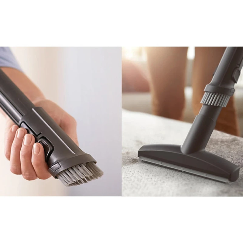 فیلتر HEPA 13 به همراه HEPA AirSeal برای جذب ذرات ریز گرد و غبار و آلرژی ها و همچنین تصفیه هوا, لوله تلسکوپی فلزی 2 قسمتی, نازل اصلی مدل TriActive با قابلیت تنظیم در 2 حالت برای تمیز کردن سطوح صاف و کف زمین, دارای کنترل از راه دور بدون خم شدن، با فناوری بی سیم IR, دارای کیسه از نوع s-bag با عملکرد فوق العاده طولانی و ظرفیت 5 لیتر, فناوری Airflow Max برای به حداکثر رساندن جریان هوا و بالاترین قدرت مکش حتی با پر شدن کیسه, قابلیت تنظیم قدرت مکش به کمک دکمه چرخشی روی بدنه, مجهز به نازل سوپر پارکت برای از بین بردن 3 برابر بیشتر کثیفی های چسپنده